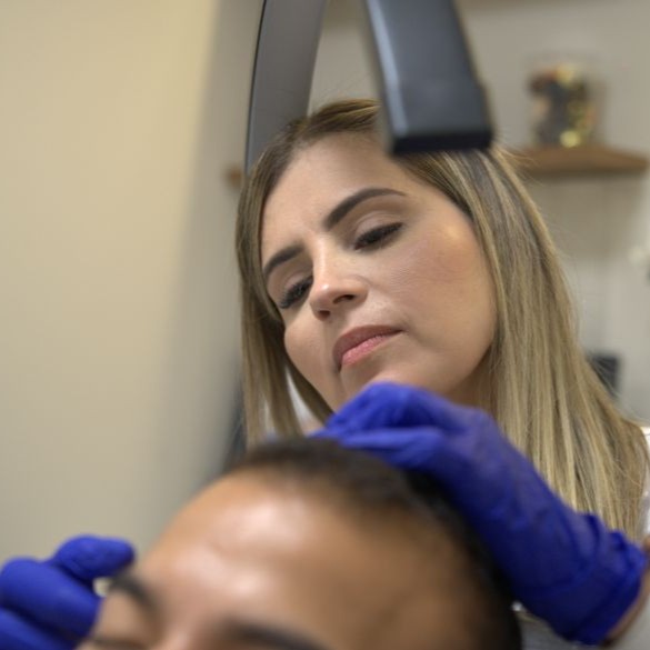 Durante la valoración médica gratuita examinamos tu cuero cabelludo con un microscopio capilar (tricoscopio).